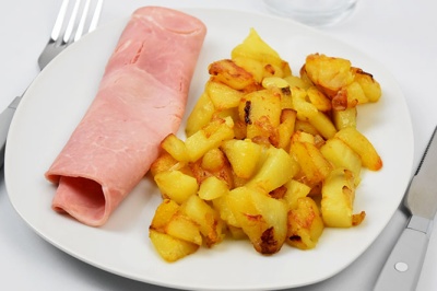 Mardi : Céleri râpé vinaigrette ; Jambon blanc / Rôti de dinde / Boulettes panées de blé façon thaï mayonnaise / Pommes de terre sautées / Carré de l'est ; Kiwi